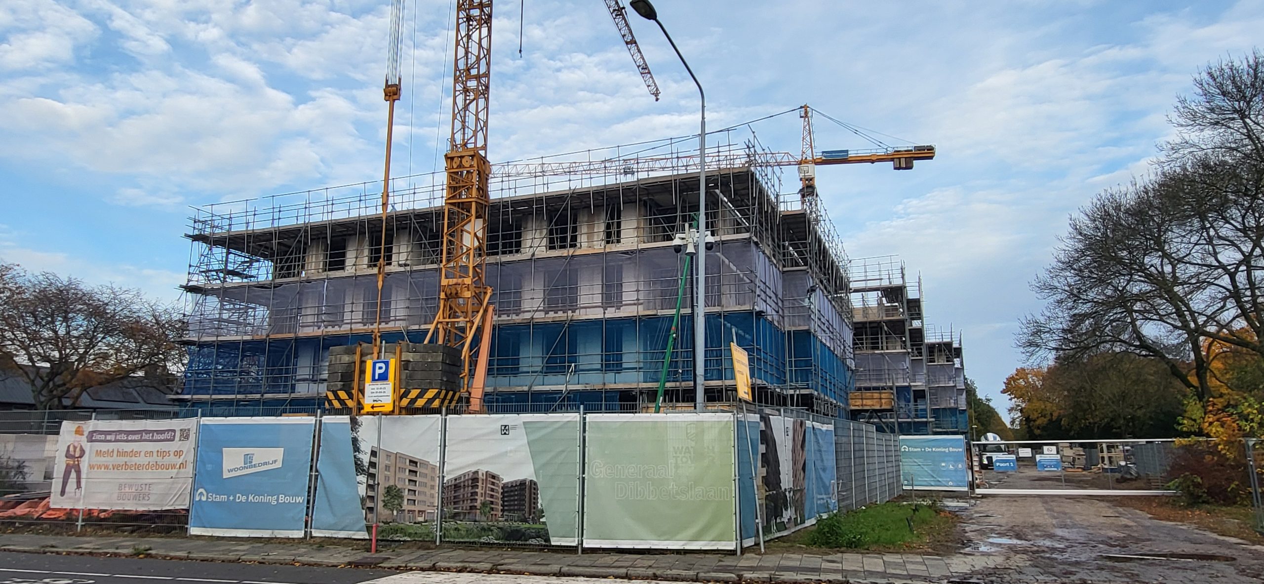 De bouw van 157 nieuwe huurappartementen van Woonbedrijf aan de Generaal Dibbetslaan verloopt voorspoedig. Het hoogste punt is bijna bereikt. Er komen hier 3 gebouwen