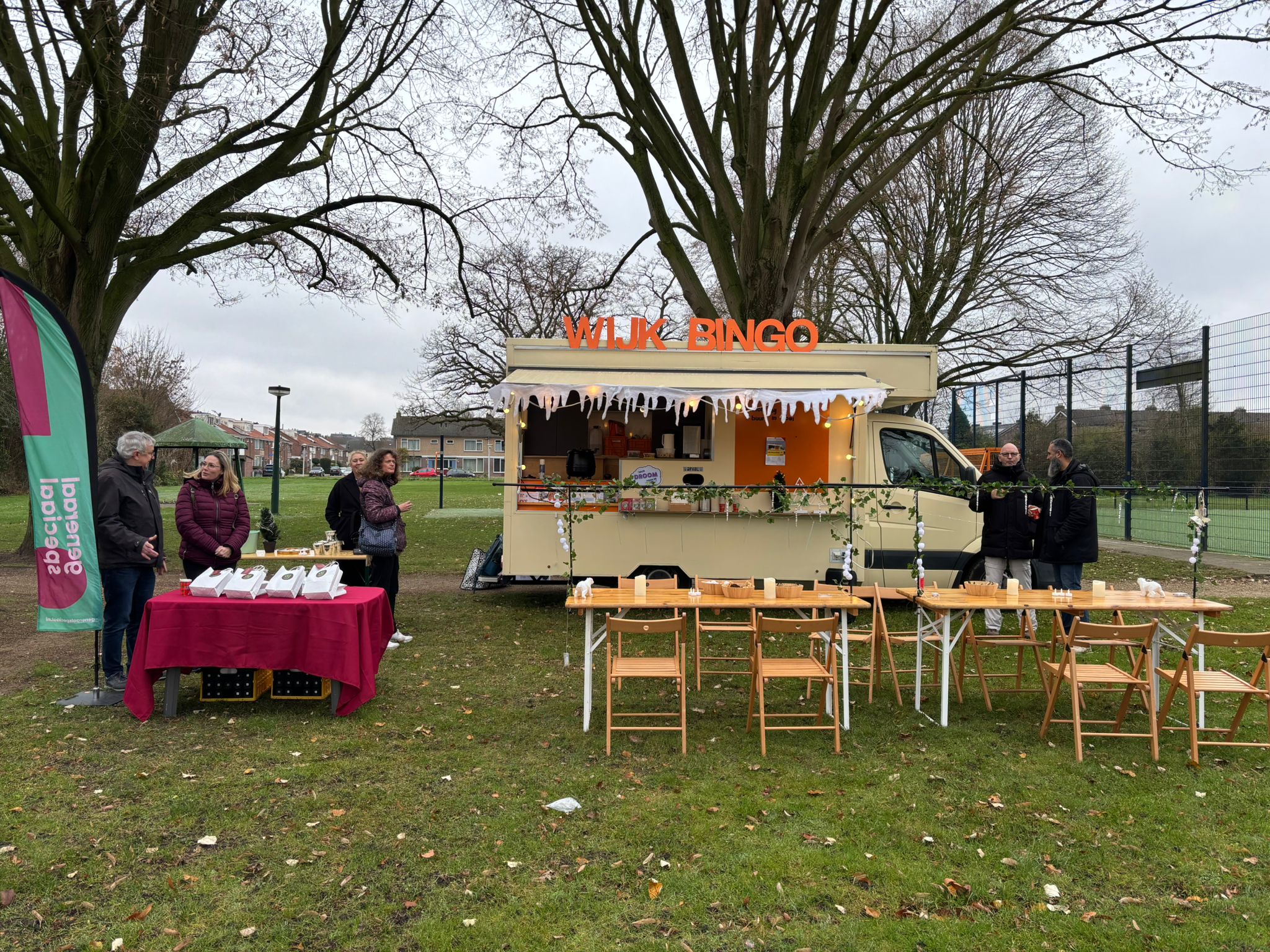 Op een frisse zondagmiddag stonden de verbinders van Wijeindhoven klaar bij een prachtig versierde bus. Met warme chocolademelk, een kop